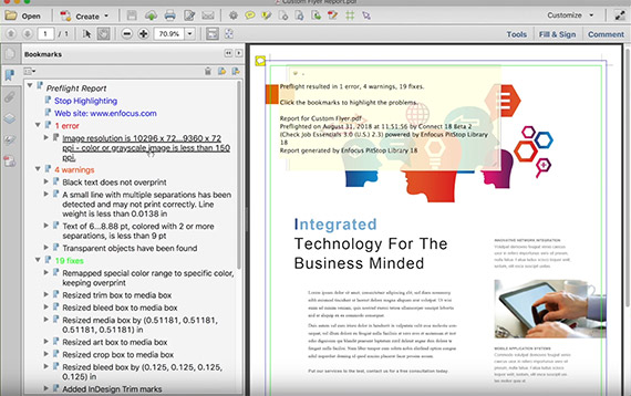 Enfocus Connect ALL is een applicatie voor kwaliteitscontrole en de correctie van PDF bestanden. U kunt alle instellingen vooraf instellen en deze aanleveren aan uw klanten. U versnelt het bestandsproductieproces door de automatisering van taken, creëren van consistentie en foutvermindering bij klanten. Connect ALL is bestemd voor bedrijven die connectors willen distribueren aan interne of externe gebruikers. Connect ALL omvat alle functies voor de branding van connectors, taaktickets, PDF-creatie, PDF-preflight, bestandslevering en het extern updaten van connectors.